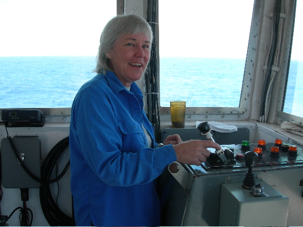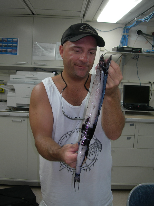 Tracey holding the largest catch of the cruise. MD Allison, WHOI