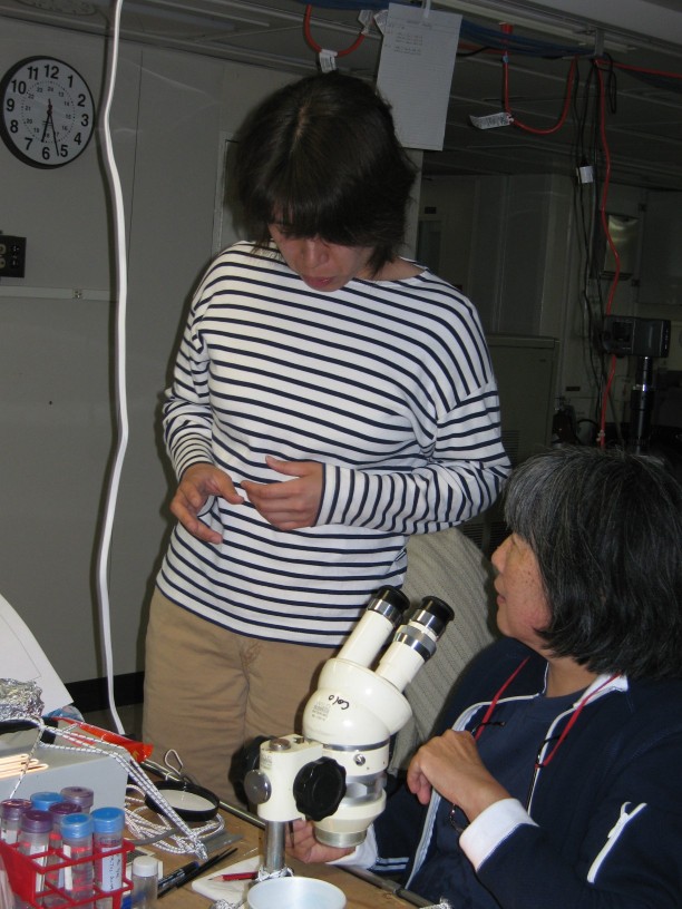 Yurika and Silvia talk about forams. NJ Copley, WHOI